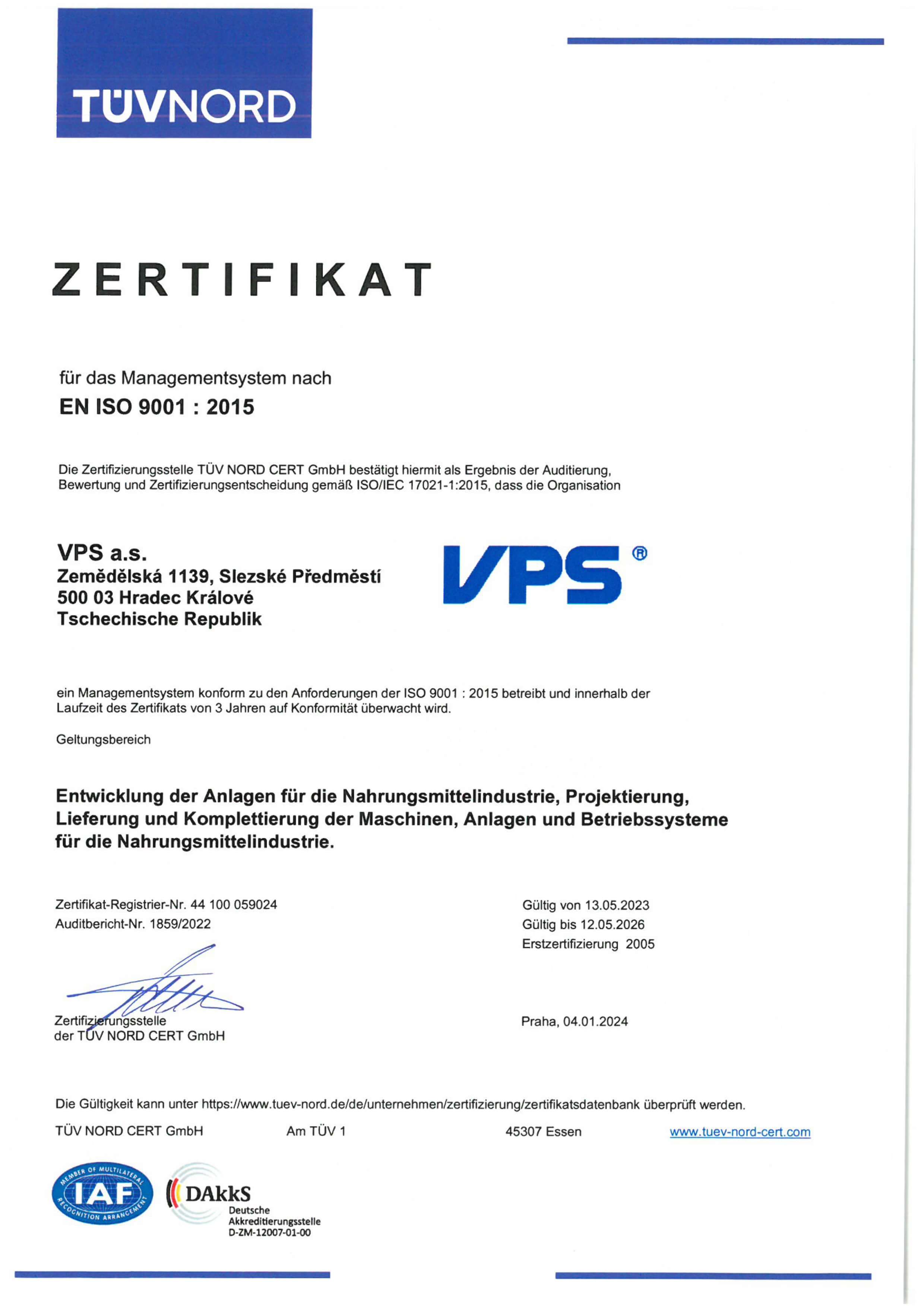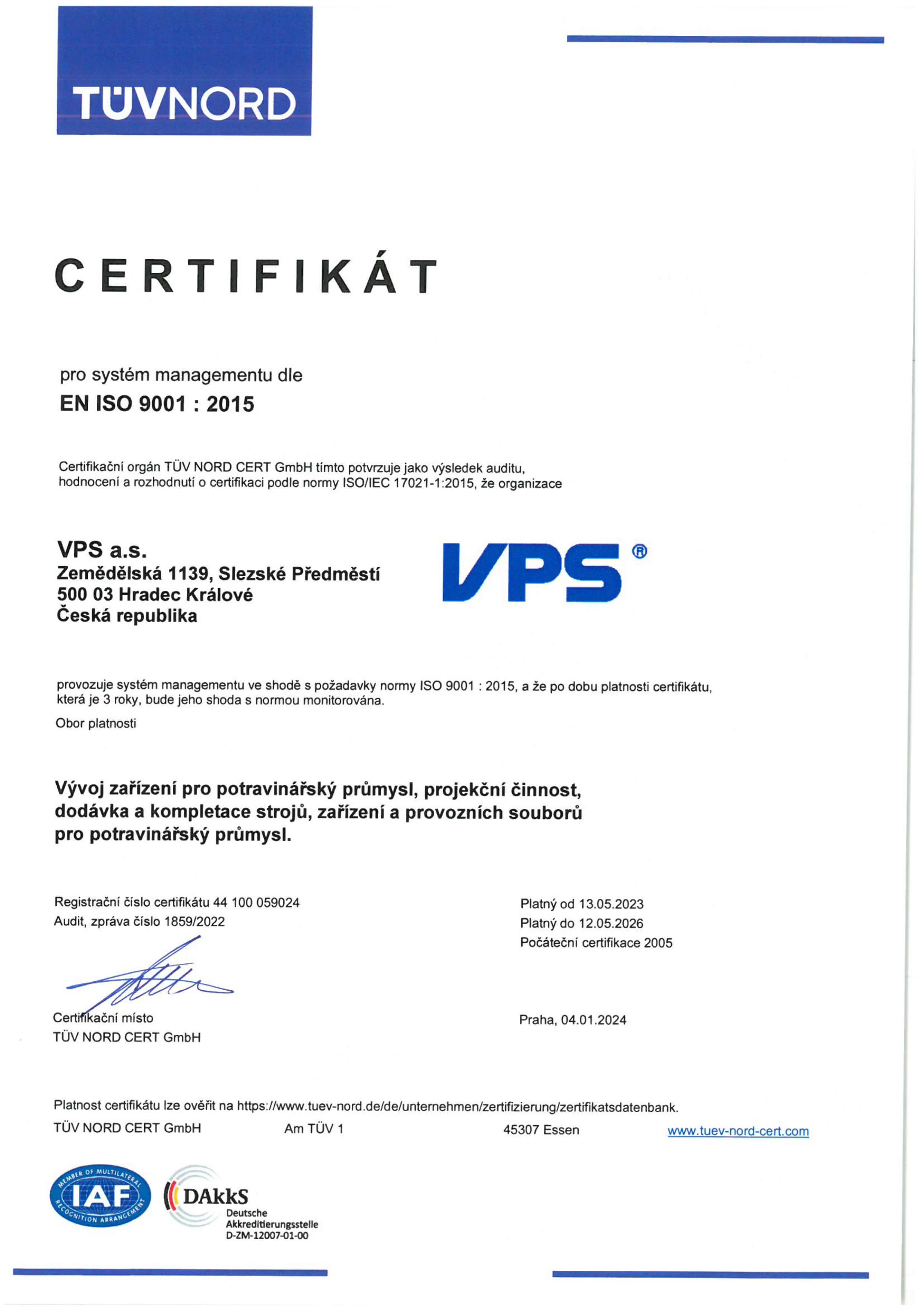 Vedení akciové společnosti VPS engineering a.s. vyhlašuje v zájmu udržení a zlepšení dosavadní pozice na trhu v oblasti dodávek strojů a zařízení pro potravinářský průmysl následující